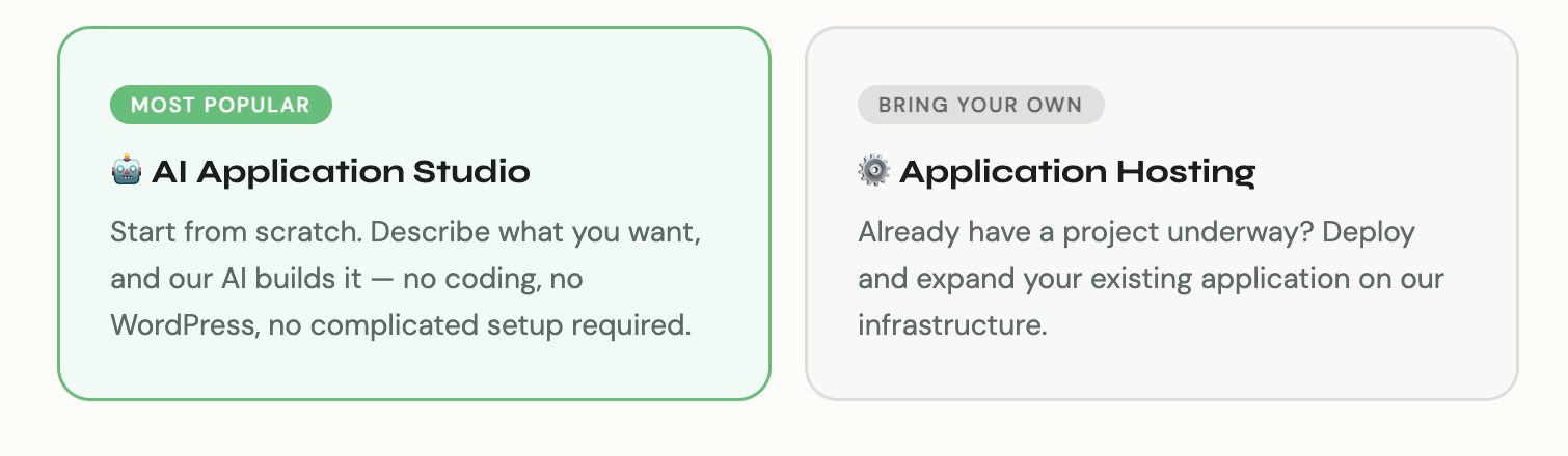 As a reseller, you now have access to one of the hosting industry's most powerful tools — AI-driven website and application creation. No coding. No WordPress. Just results.