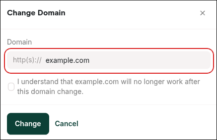 In the Change Domain dialog box, in the Domain text box, type the new domain name: