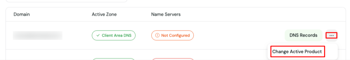 If you have more than one hosting package and want to switch the DNS zone, you can do this from Change Active Product, then choose the right package.