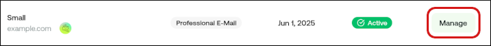 On the Email & Office Tools page, locate your email account, and then click Manage:
