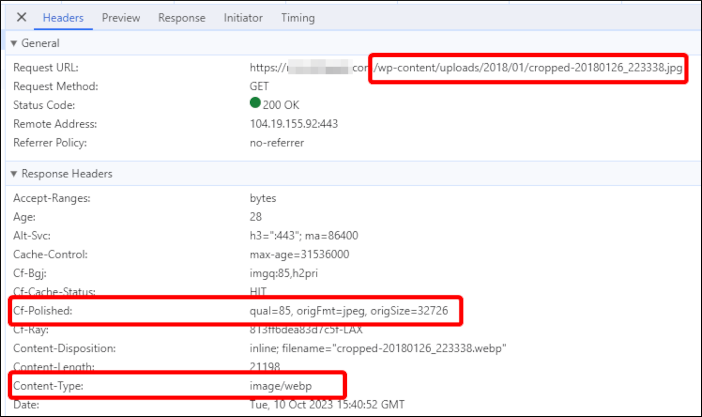 Here is another example that shows the original file format and how Cloudflare's Polish feature has modified the file at the edge: