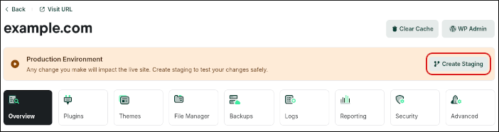 To create a staging site, follow these steps: