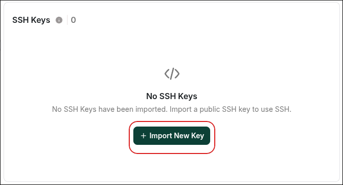 Scroll down to the SSH Keys section, and then click Import New Key: