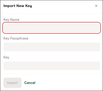 In the Import New Key dialog box, in the Key Name text box, type a descriptive name for the key: