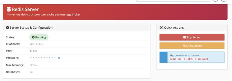 - If it is not running, click Start Redis Server.