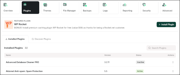 For more information about how to manage plugins from the hosting.com Dashboard, go to: