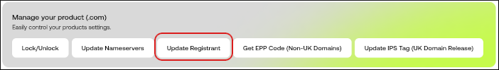 - In the Update Registrant dialog box, update the domain registrant contact information: