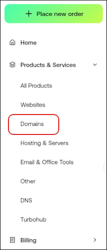 Tip - You can filter the list of domains to only display active, canceled, or all domains. To do this, click the Active, Cancelled, or All tab.