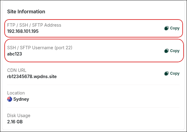 You're ready to connect to the server and run WP-CLI. To do this, you need your SSH username and server IP address.