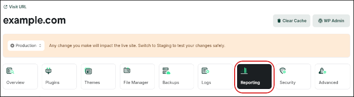 This article discusses how to view site visitor statistics, Web Application Firewall (WAF) security reports, and more for your hosting.com Managed WordPress site.