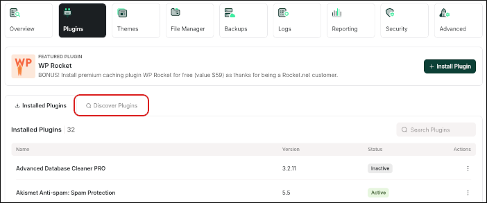 Managing WordPress plugins from the hosting.com Dashboard
