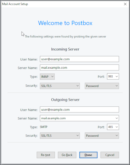 Click Done. Postbox downloads any messages in the account.