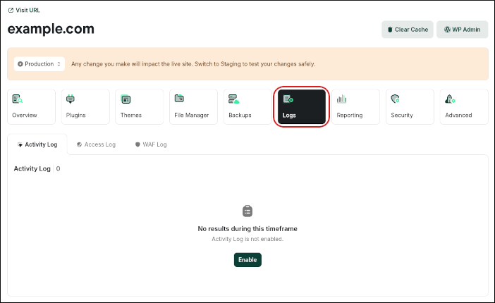 Learn how to enable and use the WordPress Activity Log on hosting.com Managed WordPress.