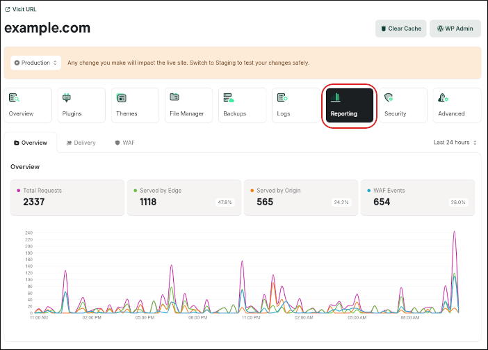 Keep scrolling down to view analytics from Cloudflare’s Edge network to gain a greater understanding of the traffic going to your site from Cloudflare’s perspective.