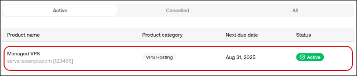 On the Hosting & Servers page, locate your VPS, and then click Manage.