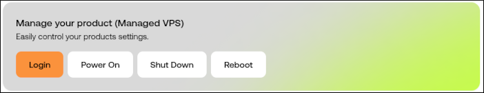 To start, stop, or reboot the VPS, click Power On, Shut Down, or Reboot.